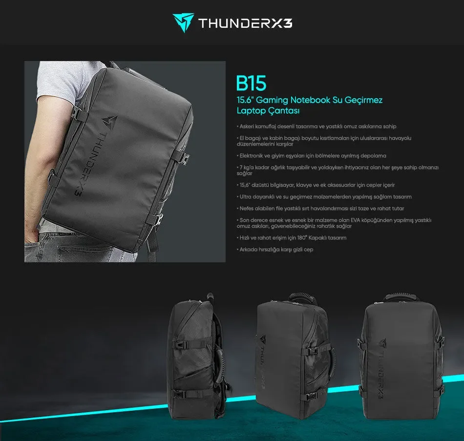 Aerocool Thunderx3 B15 15.6" Gaming Notebook Laptop Çantası Su Geçirmez (AE-AB15)