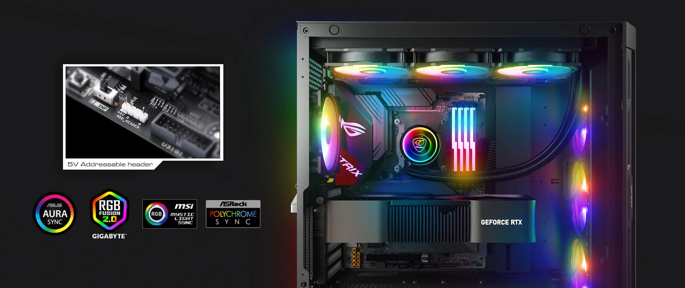 | Anakart Senkronizasyon Yazılımı ile Fanları ve Aydınlatmayı Kontrol Edin Poseidon Elite ARGB, ARGB aydınlatmasını anakart yazılımıyla kontrol edebilir. Sistem genelinde kontrolün bir sonraki seviyesini deneyimleyin. |
