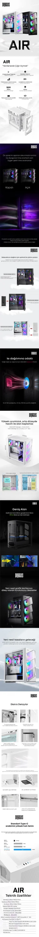 Dragos Air 4 ARGB Fanlı Beyaz Type-C ATX Oyuncu Kasası