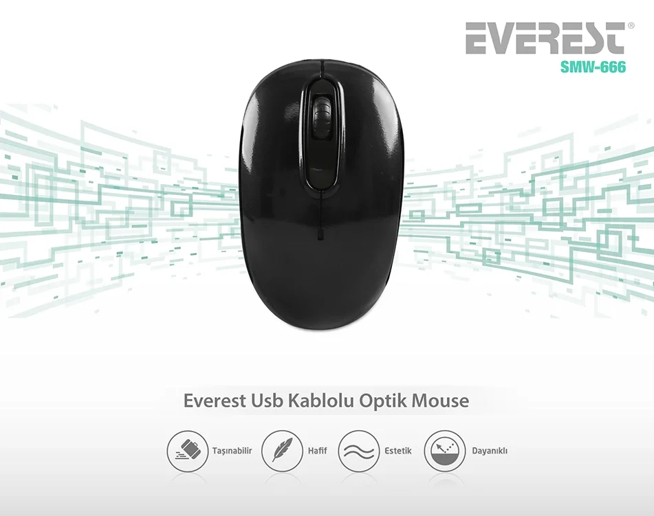 Estetik tasarımı, kullanışlı yapısı ve bir çok fonksiyonuyla göz dolduruyor. 100X40mm minimal ebatlara sahip Everest SMW-666 estetik tasarımı ile vazgeçilmeziniz olacak!