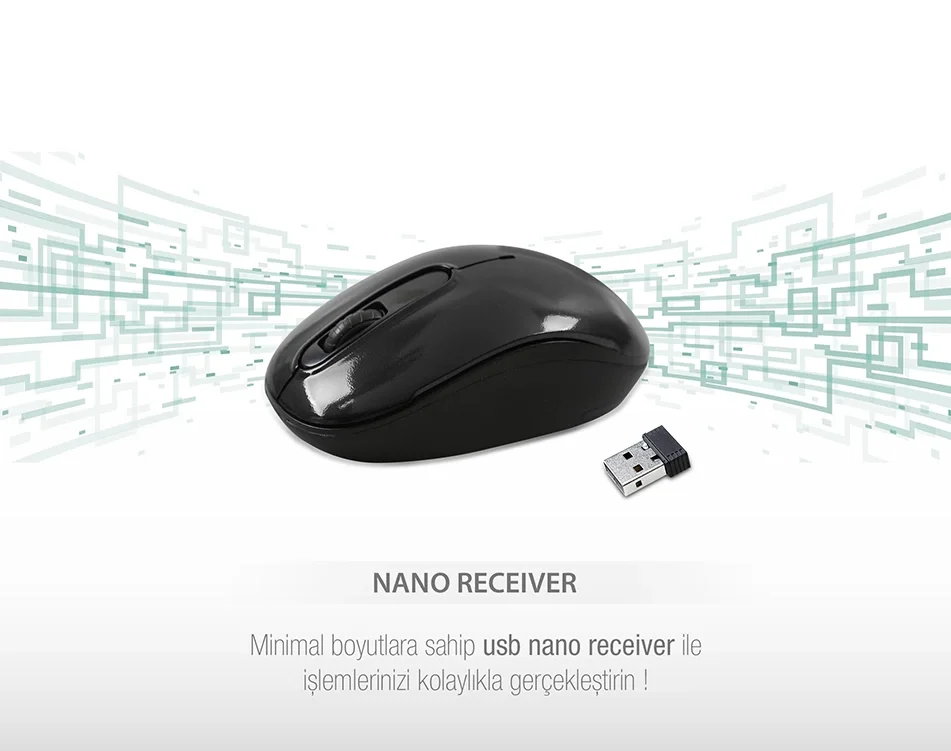 Minimal boyutlarda olan Nano alıcısı sayesinde sorunsuz bir kullanım sağlar. Tak çalıştır özelliği ile kurulum gerektirmeyen bir üründür. Üstün optik okuyucu sayesinde mouse'unuz ile işlemlerinizi hızla gerçekleştirmenize imkan tanır.