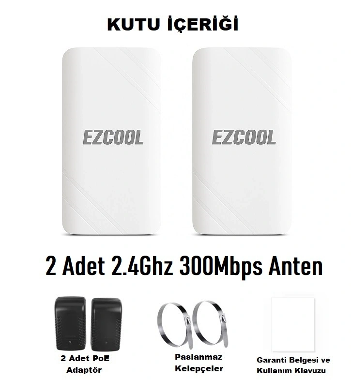EZCOOL EZ-W240AN 2.4GHz 300Mbps 1KM MENZİLLİ KABLOSUZ ANTEN AKTARICI