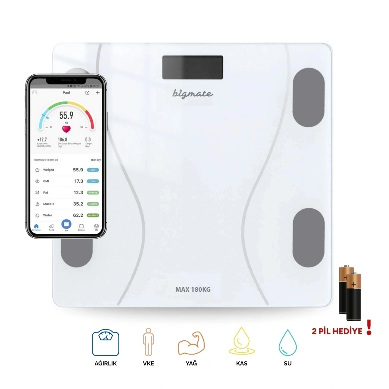 Bigmate BGT-7001B Wi-Fi & Bluetooth Akıllı Baskül – HEDİYE