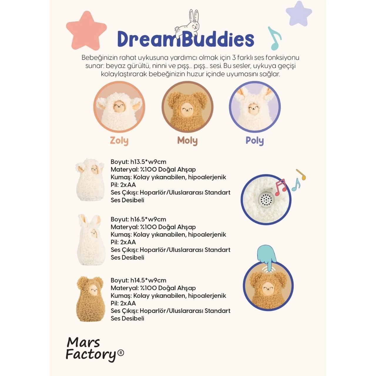Dream Buddies, bebeğinizin uykuya geçişini kolaylaştırır ve gece boyunca sakin, huzurlu bir uyku ortamı oluşturur. Hem güvenli hem de doğal bir uyku arkadaşı arayan aileler için ideal bir seçimdir.