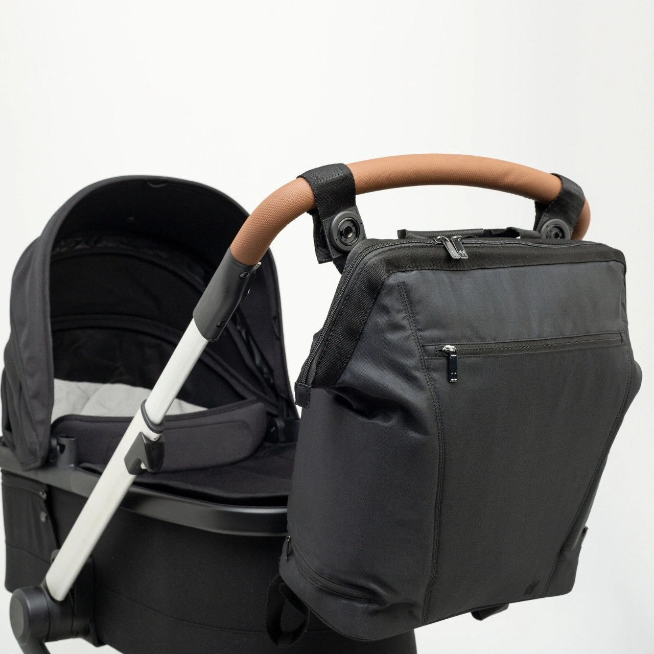 Yüksek kaliteli Fidlock mıknatıs sistemi sayesinde çanta, bebek arabası sapına hızlı ve güvenli şekilde takılıp çıkarılabilir.