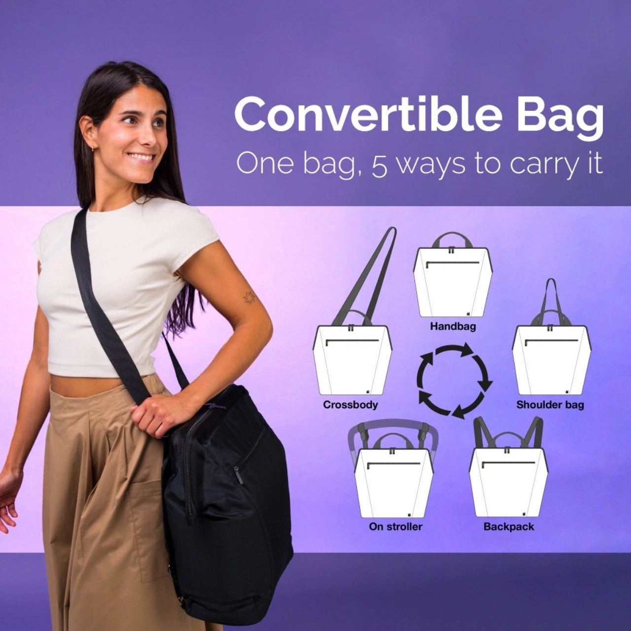 Tek çanta ile 5 farklı taşıma seçeneği sayesinde gün boyu ihtiyaç duyacağınız tüm eşyaları rahatlıkla yanınızda taşıyabilirsiniz.