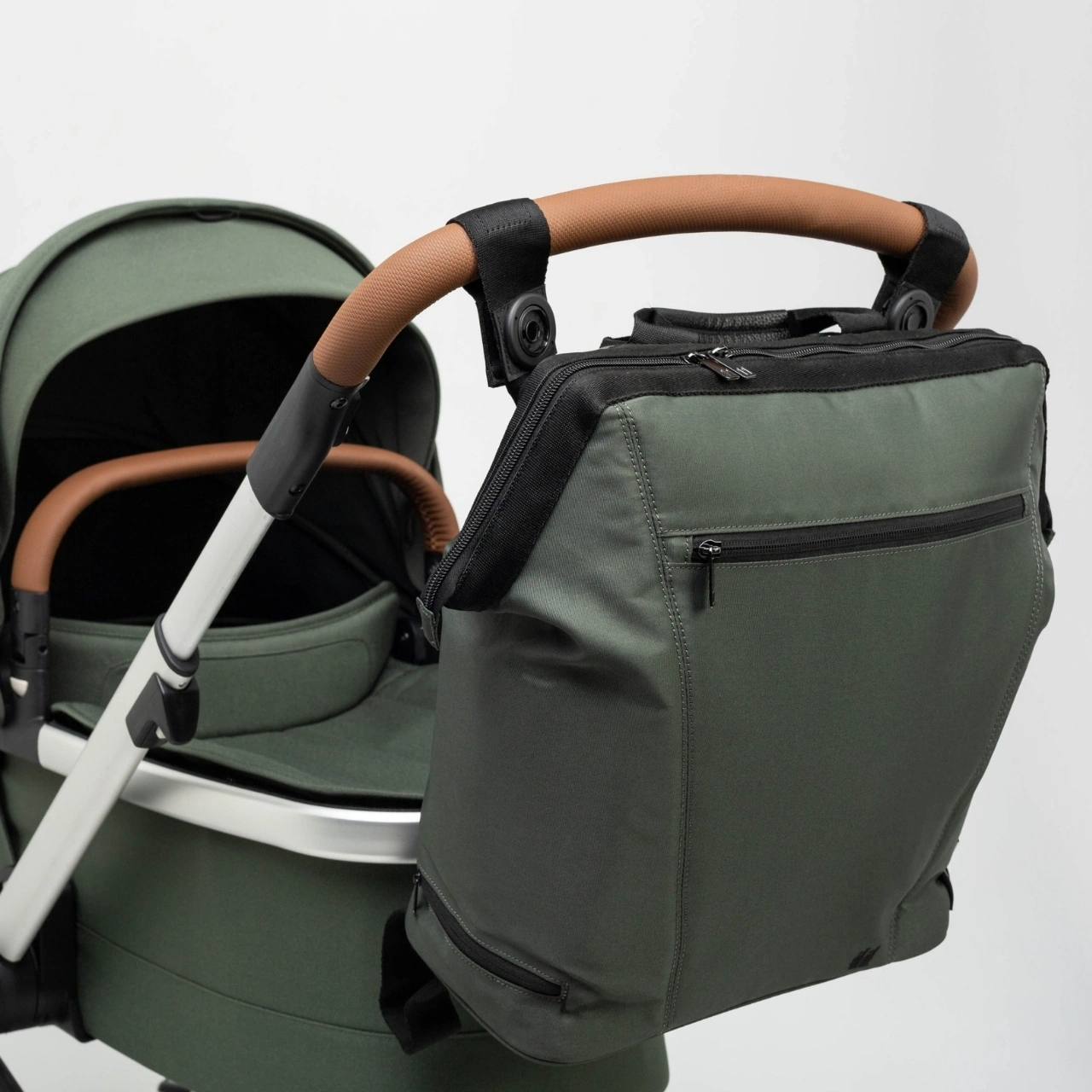 Yüksek kaliteli Fidlock mıknatıslar sayesinde çanta, bebek arabası sapına hızlıca takılıp çıkarılabilir.