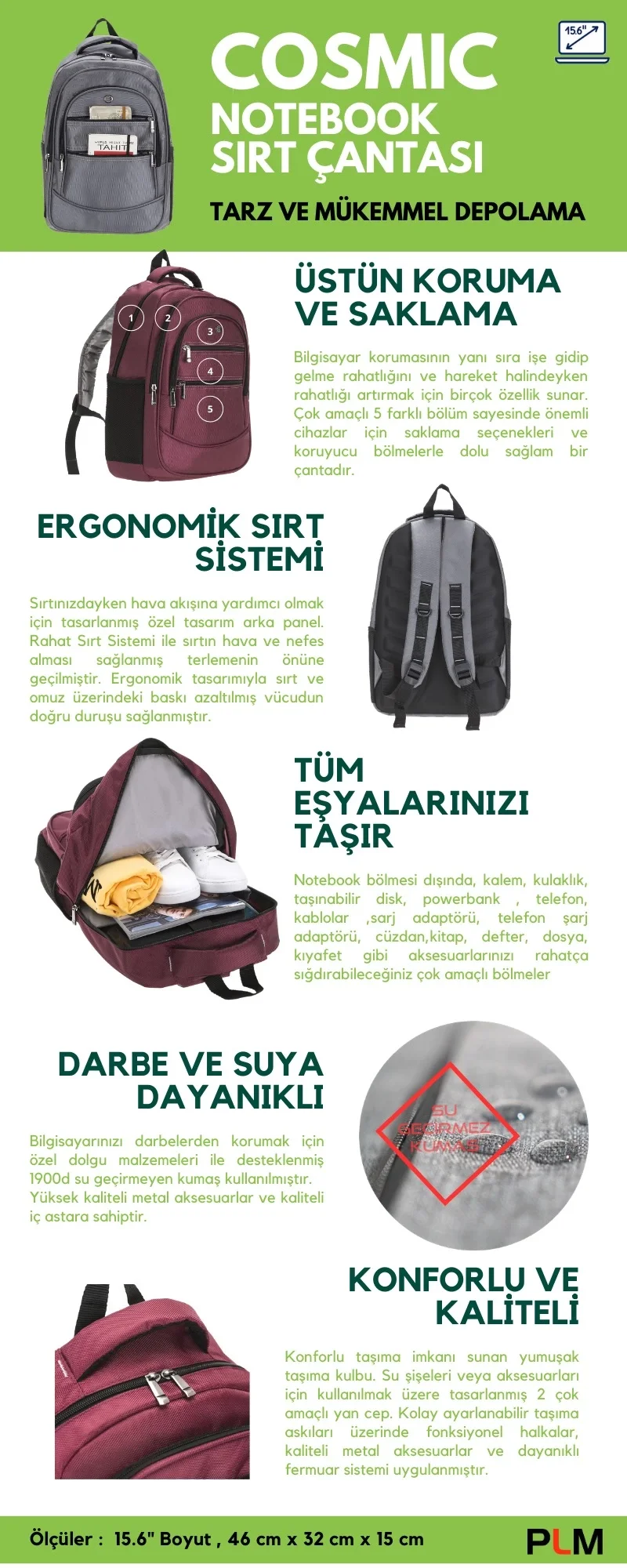 Modern, dayanıklı ve fonksiyonel bir notebook çantası arıyorsanız PLM Cosmic, hem şık tasarımı hem de yüksek koruma özellikleri ile günlük hayatınızın vazgeçilmezi olacak!
