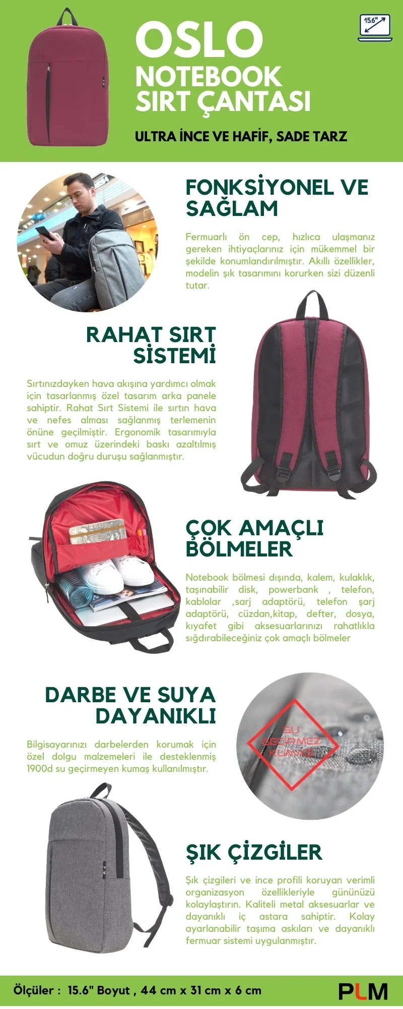 Günlük hayatın koşuşturmasında hem konfor hem de pratik kullanım sunan PLM Oslo 15.6" Siyah Notebook Çantası, fonksiyonel bölmeleri ve ergonomik tasarımıyla tüm ihtiyaçlarınıza cevap verir. 15.6” boyutundaki Notebook, Netbook, MacBook ve Tablet gibi cihazlarınıza uygun özel bölmeleri sayesinde eşyalarınızı güvenle taşımanıza yardımcı olur.