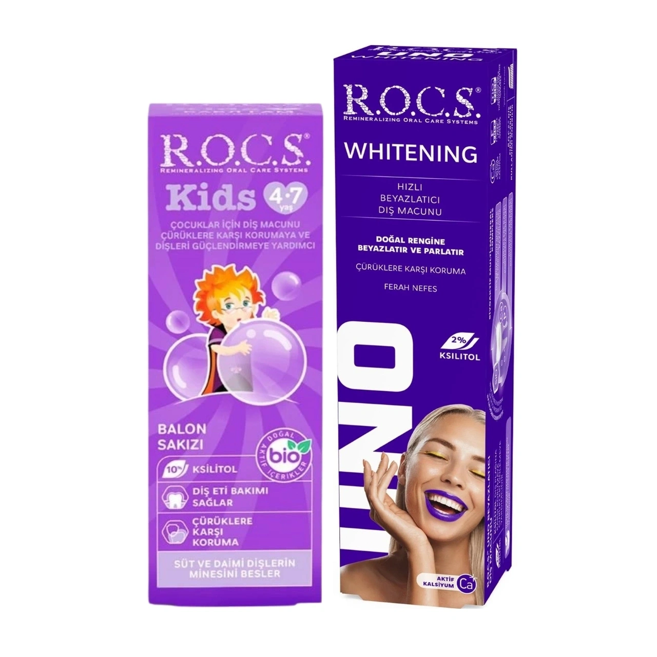 R.O.C.S Anne & Çocuk Diş Bakım Seti – Uno Beyazlatıcı & Balon Sakızı (4-7 Yaş)