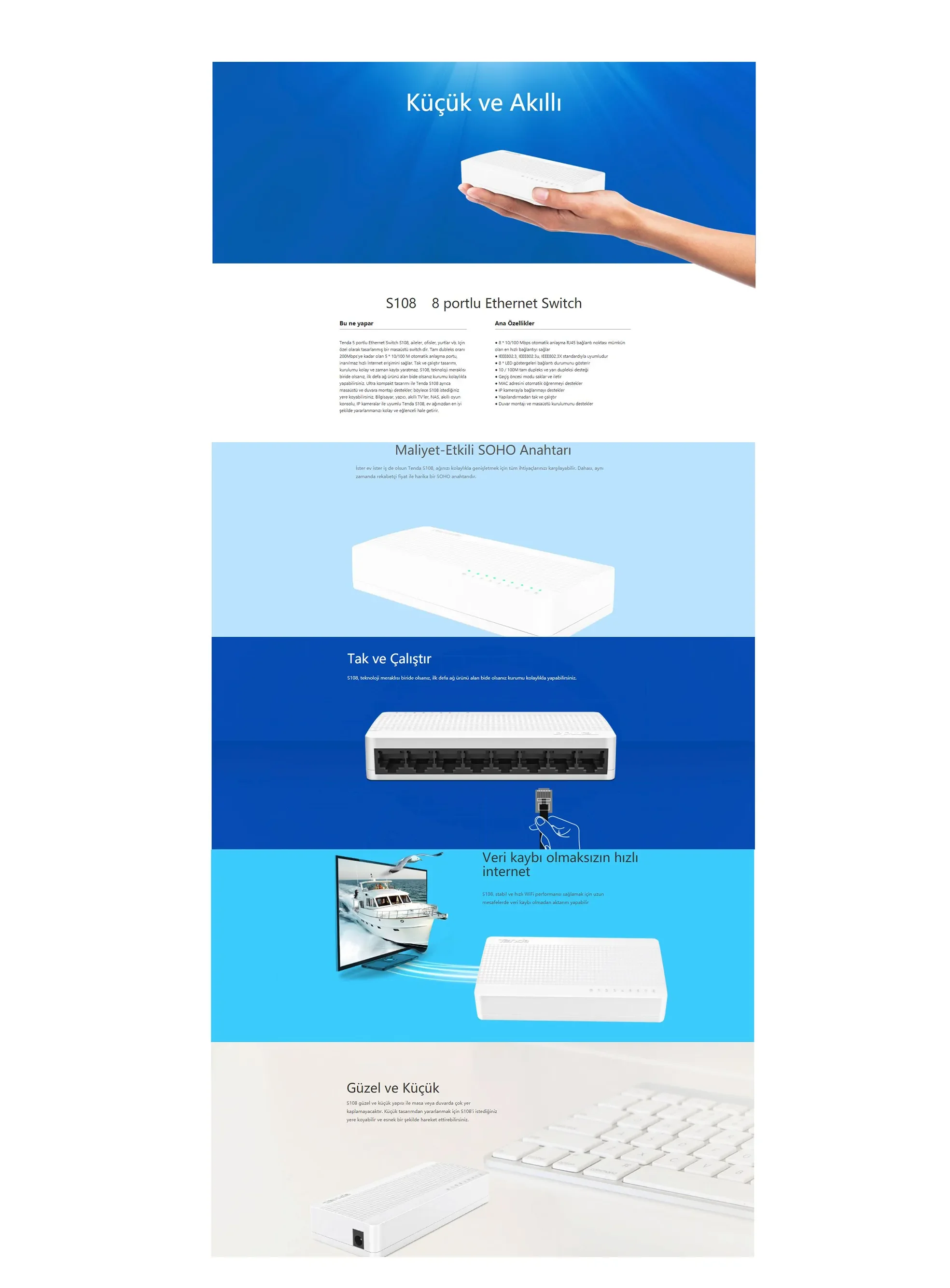 Tenda S108 8 Port 10/100 Mbps Switch Plastik Kasa