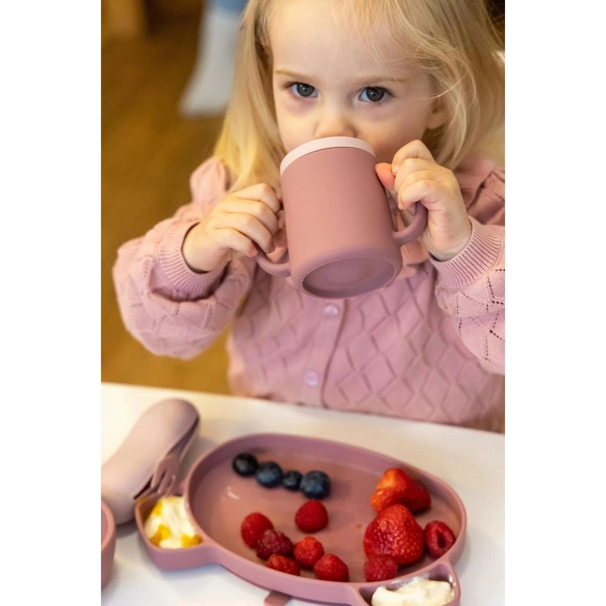 Tum Tum Silikon Alıştırma Bardağı, bebeğinizin özgüvenle bardak kullanmayı öğrenmesine destek olurken ebeveynler için de pratik ve güvenli bir çözüm sunar.