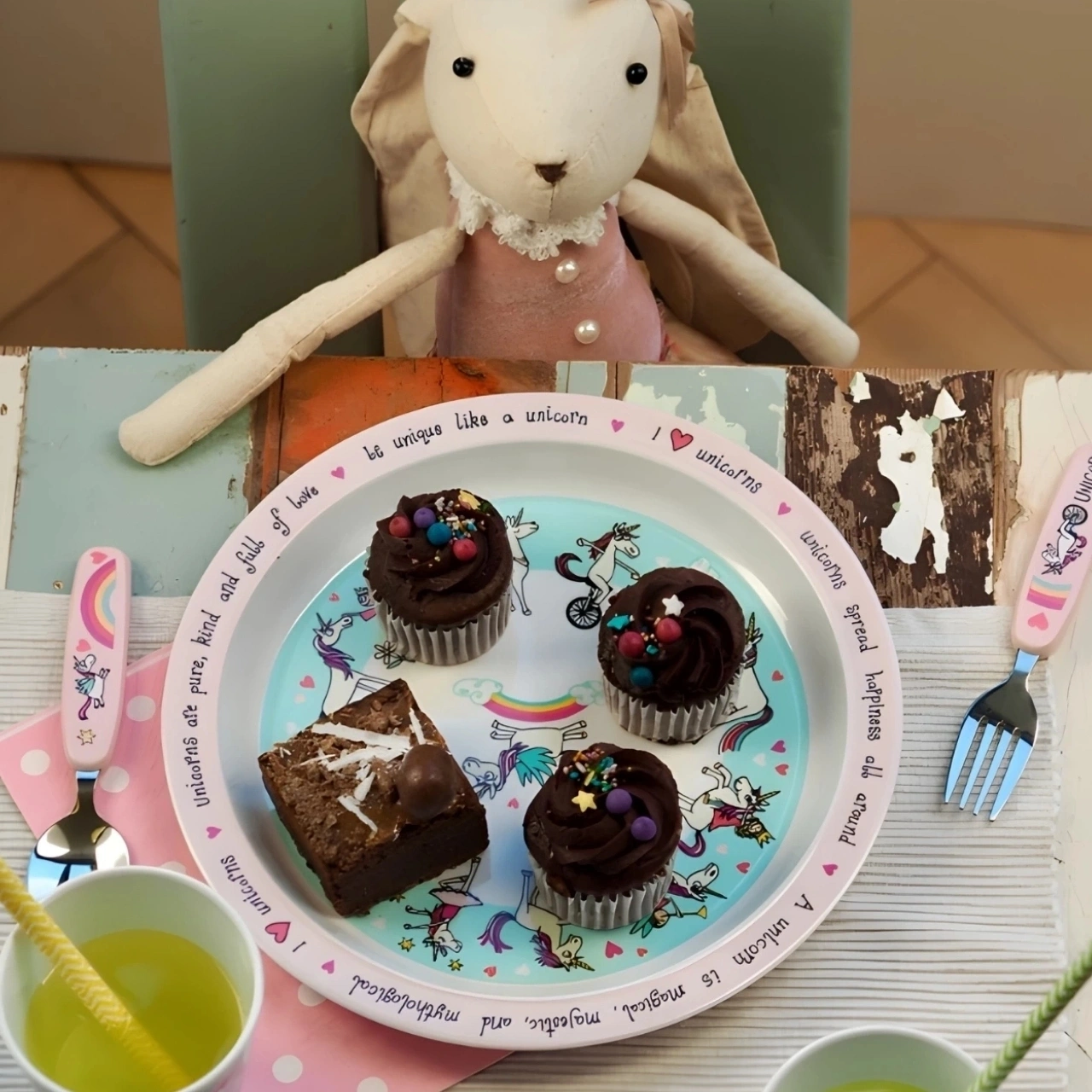 Tyrrell Katz 3’lü Melamin Mama Seti - Unicorn – Tabak, Bölmeli Mini Tabak ve Mama Kasesi