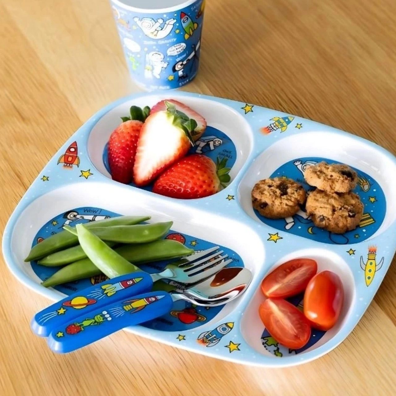 Tyrrell Katz Bölmeli Tabak ve Pipetli Matara Set - Space – Eğlenceli ve Güvenli Beslenme