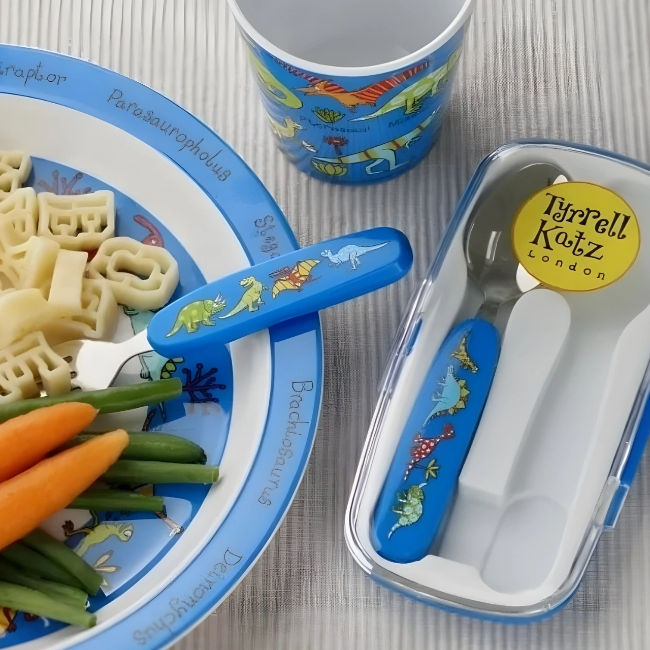 Tyrrell Katz Melamin Mama Kasesi, Alıştırma Bardağı & Kutulu Çatal Kaşık Seti, çocukların yemek saatlerini hem eğlenceli hem de pratik hale getirmek için özel olarak tasarlanmıştır. Renkli ve dikkat çekici desenleri sayesinde çocukların ilgisini çeker, kendi başlarına yemek yeme alışkanlığı kazanmalarını destekler.