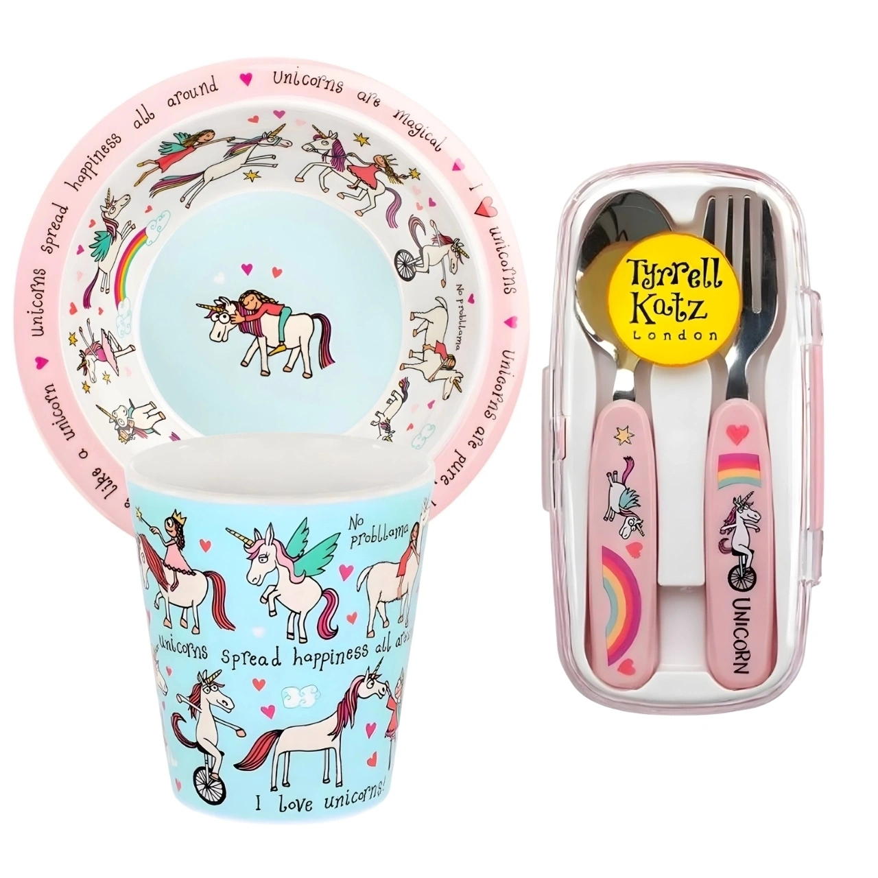 Tyrrell Katz Melamin Mama Kasesi, Alıştırma Bardağı & Kutulu Çatal Kaşık Seti