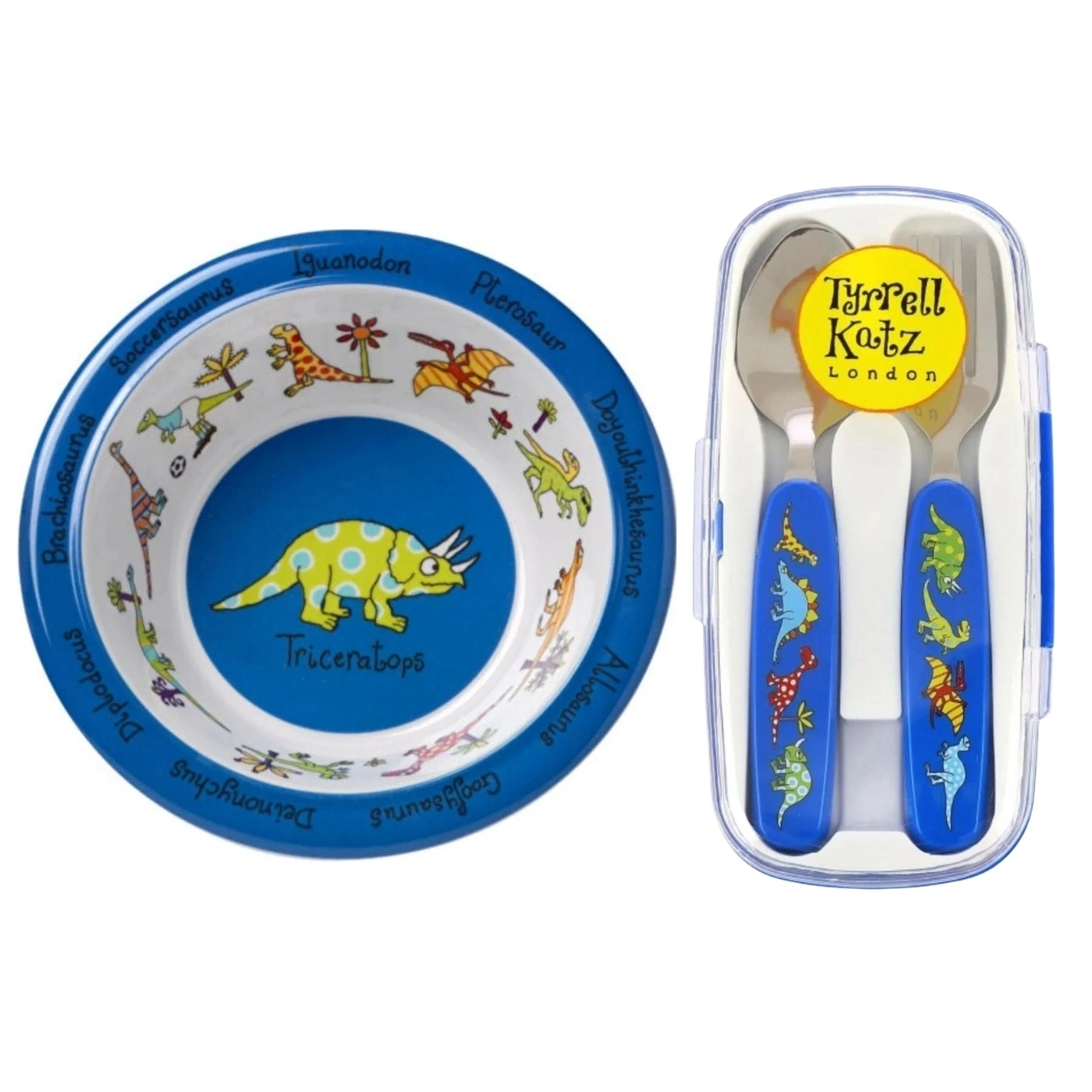 Tyrrell Katz Melamin Mama Kasesi & Kutulu Çatal Kaşık Seti, çocukların yemek saatlerini daha keyifli ve pratik hale getirmek için tasarlanmıştır. Renkli ve eğlenceli desenleri sayesinde çocukların ilgisini çeker, kendi başlarına yemek yeme alışkanlığı kazanmalarını destekler.