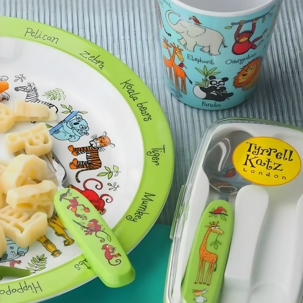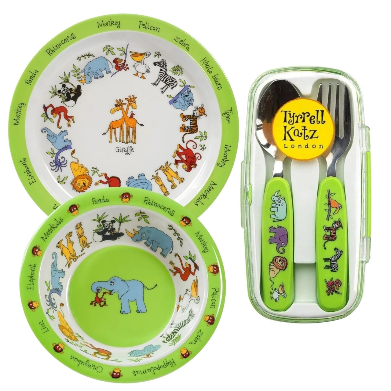 Tyrrell Katz Melamin Mama Kasesi, Tabak & Kutulu Çatal Kaşık Seti, çocukların yemek saatlerini daha keyifli ve pratik hale getirmek için tasarlanmıştır. Renkli ve eğlenceli desenleri sayesinde çocukların ilgisini çeker, kendi başlarına yemek yeme alışkanlığı kazanmalarını destekler.