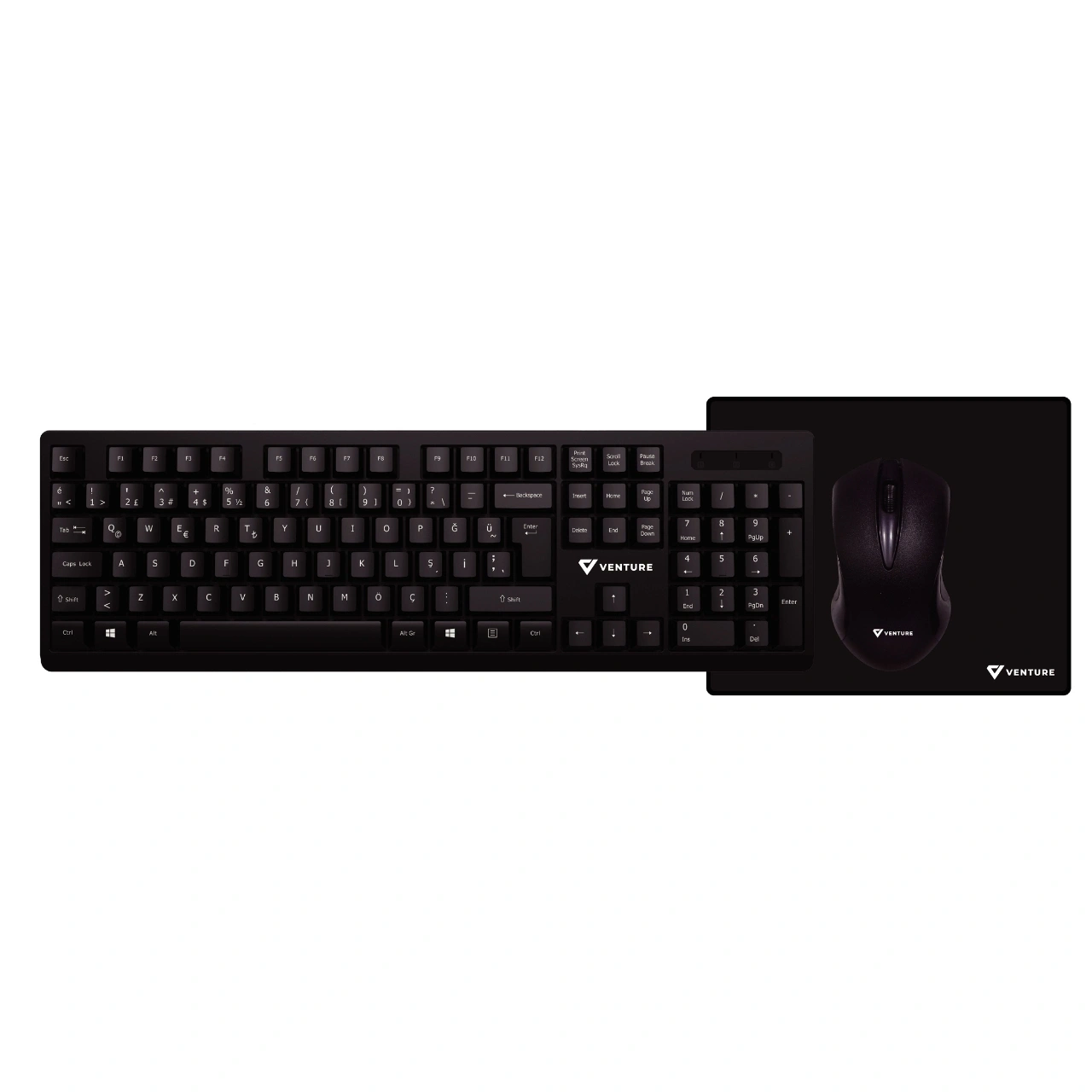 Venture VTK101 3 in 1 Combo; kablosuz klavye, kablosuz mouse ve mousepad’i tek pakette sunan pratik bir masaüstü setidir. Ofis, ev ve öğrenci kullanımı için ekonomik ve kullanışlı bir çözümdür.