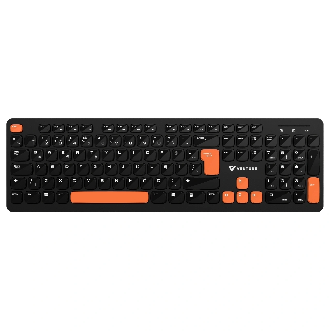 Venture VTK201 Dual Mode Chocolate Slim Keyboard Mouse Combo, modern tasarımı ve çift bağlantı desteği ile hem ofis hem ev kullanımı için ideal bir kablosuz set sunar.
