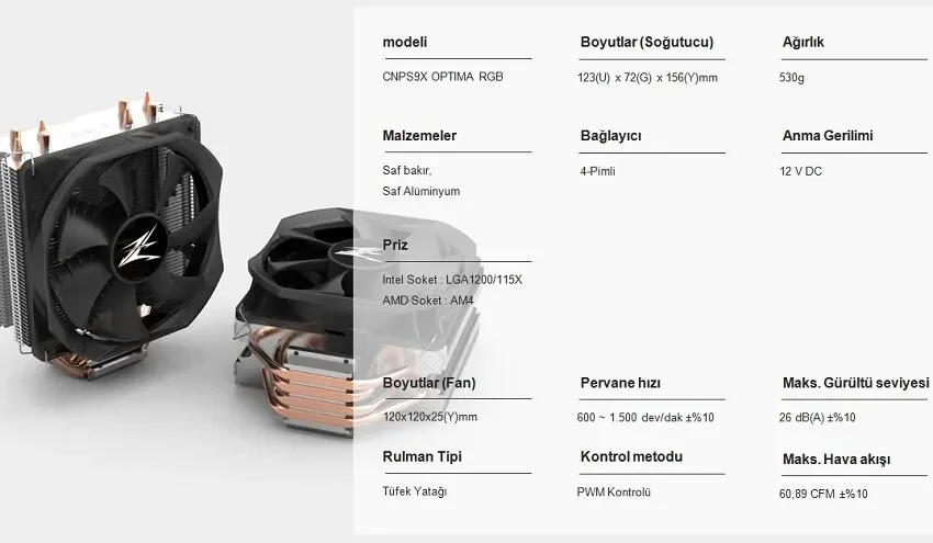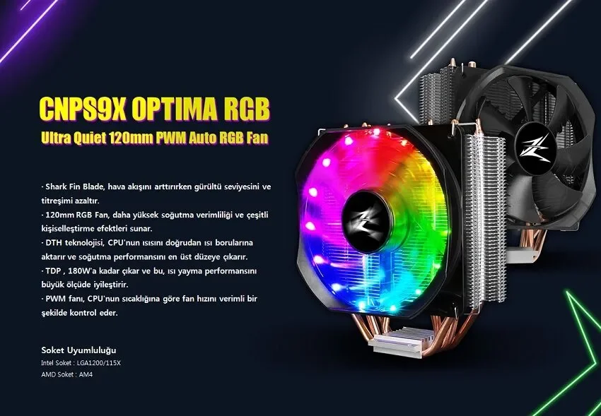 Zalman CNPS9X Optıma Rgb Yüksek Performanslı Cpu Sogutucu Intel / Amd 120MM Rgb Fanlı